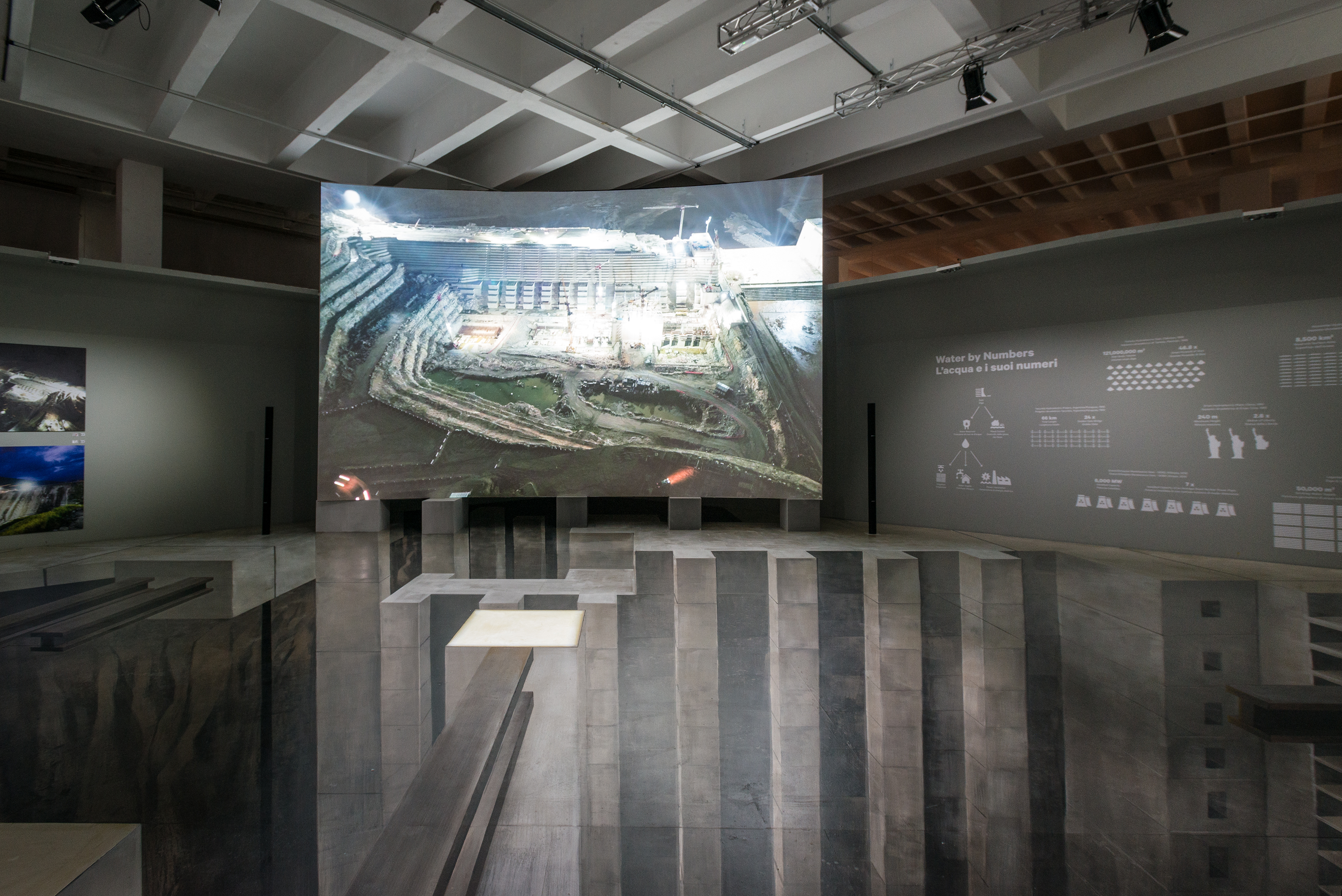 Qui è di scena l’esaltazione del lavoro degli uomini che hanno realizzato le imprese ciclopiche testimoniate dall’immenso archivio fotografico Salini. Altrettanto ciclopica la realizzazione scenografica e multimediale, a partire dalla ricostruzione della porzione di una diga in scala 1:1 che ci ha portato ad abbattere le mura della Triennale per farle spazio, alla riesumazione di oltre venti proiettori di diapositive carousel sincronizzati fra loro per una multivisione a qualità fotografica come non si vedeva dagli anni ’80, fino ad arrivare ad ambienti video totalmente immersivi. L’operaio si fa musicista e si esprime attraverso il gesto, in un crescendo che porta al concerto finale del cantiere, alla sinfonia di una grande opera.
