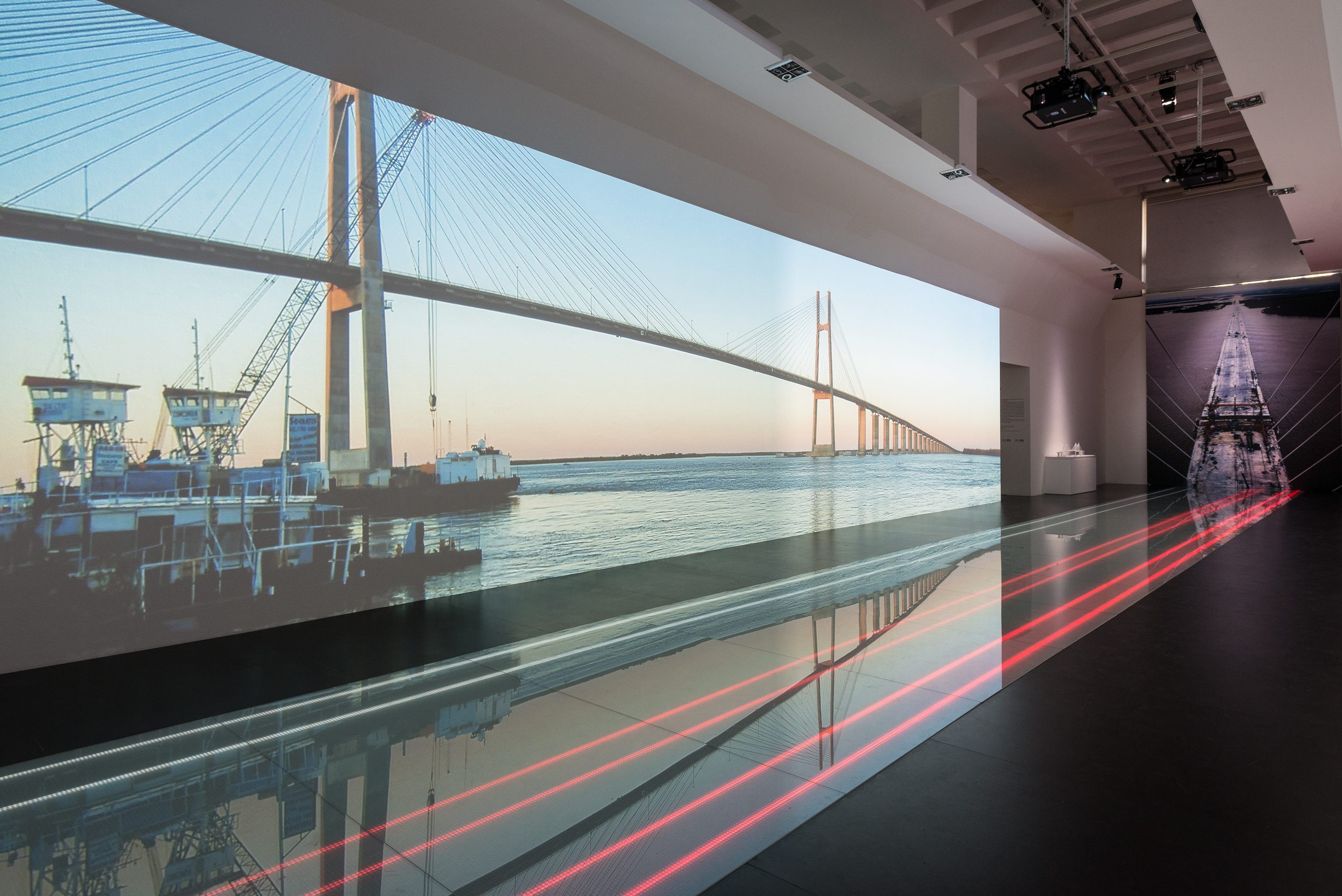 An immersive video environment with three walls and a floor vibration system conveying the spectacular feeling of standing on the bridge of a ship going through the new Panama Canal. This is just the introduction of an exhibition covering over 1000 square metres, hosting tunnels and motorways reconstructions, anamorphic images of major building projects and interactive planispheres, all created with archive materials.