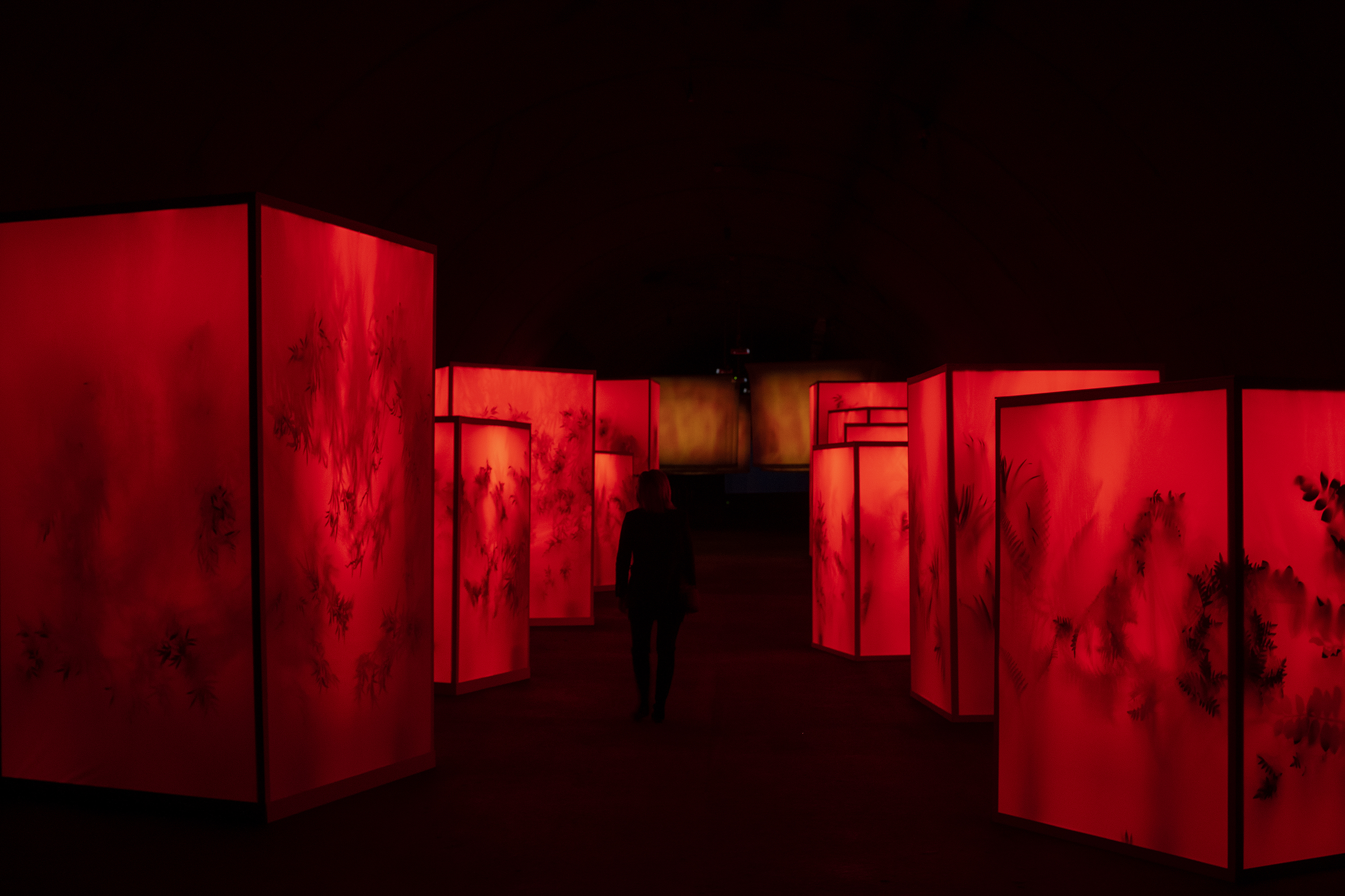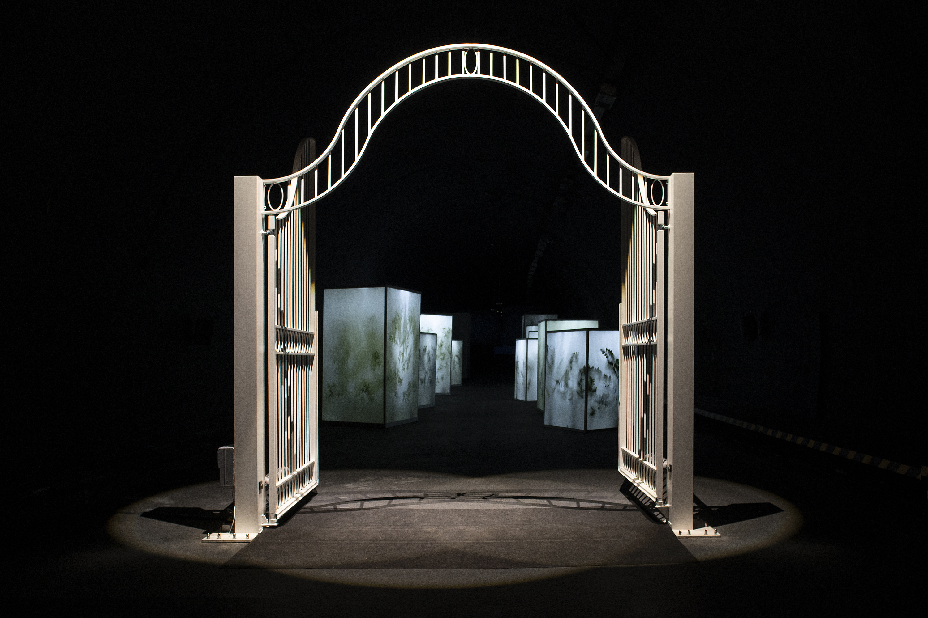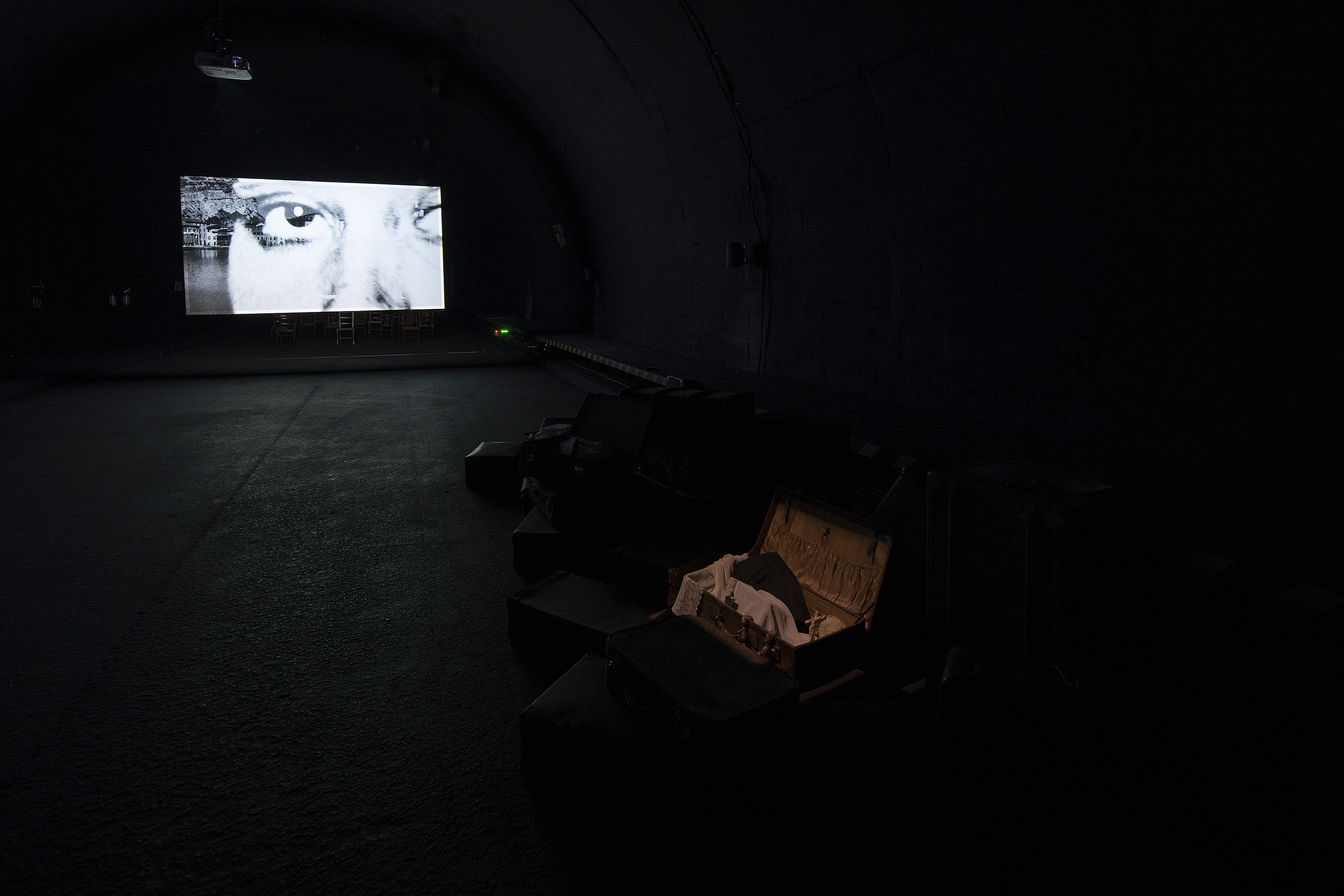 Viewers and spectators are also the protagonists and storytellers of this immersive and participatory experience set up in the imposing Black Gallery of the Trento Galleries. An itinerary set up in the Black Gallery that can be accessed by appointment, as if going to the cinema or theatre. Hence the title 'Spectacle', indicating an installation that to date remains unique in its kind. A hybrid audiovisual concert that tells two centuries of history through twelve large installations that manifest themselves in a succession of appearances, endowed with a life of their own thanks to a complex spatialisation and automation of sound, light and projections. Project realised in collaboration with FilmWork